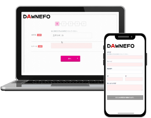 『DAWN EFO』は、Webサイトや採用ページ、LPなどの入力フォームを改善し、離脱率の低下とコンバージョン率の向上を実現するSaaS型ツールです。